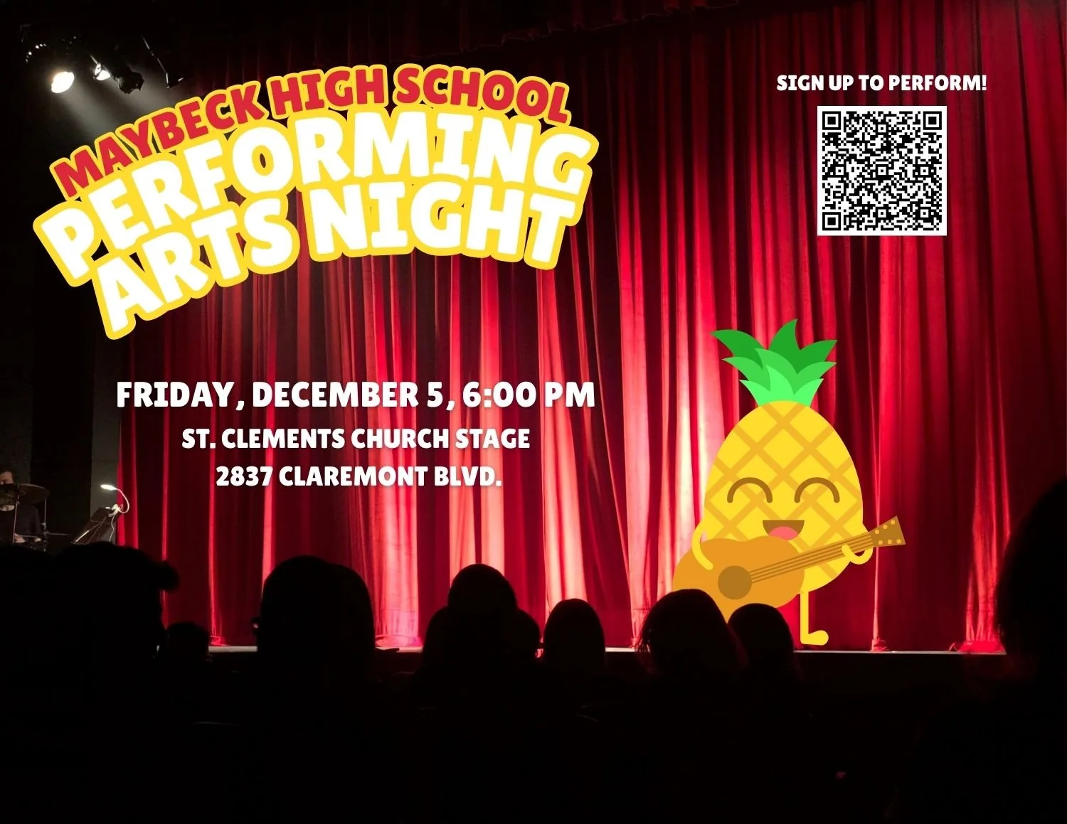 We want YOU to perform at this year's Maybeck Performing Arts Night! Whether you're a musician, actor, dancer, juggler, storyteller, ventriloquist, or have any other talents that you'd like to show off, we want to see what you've got!